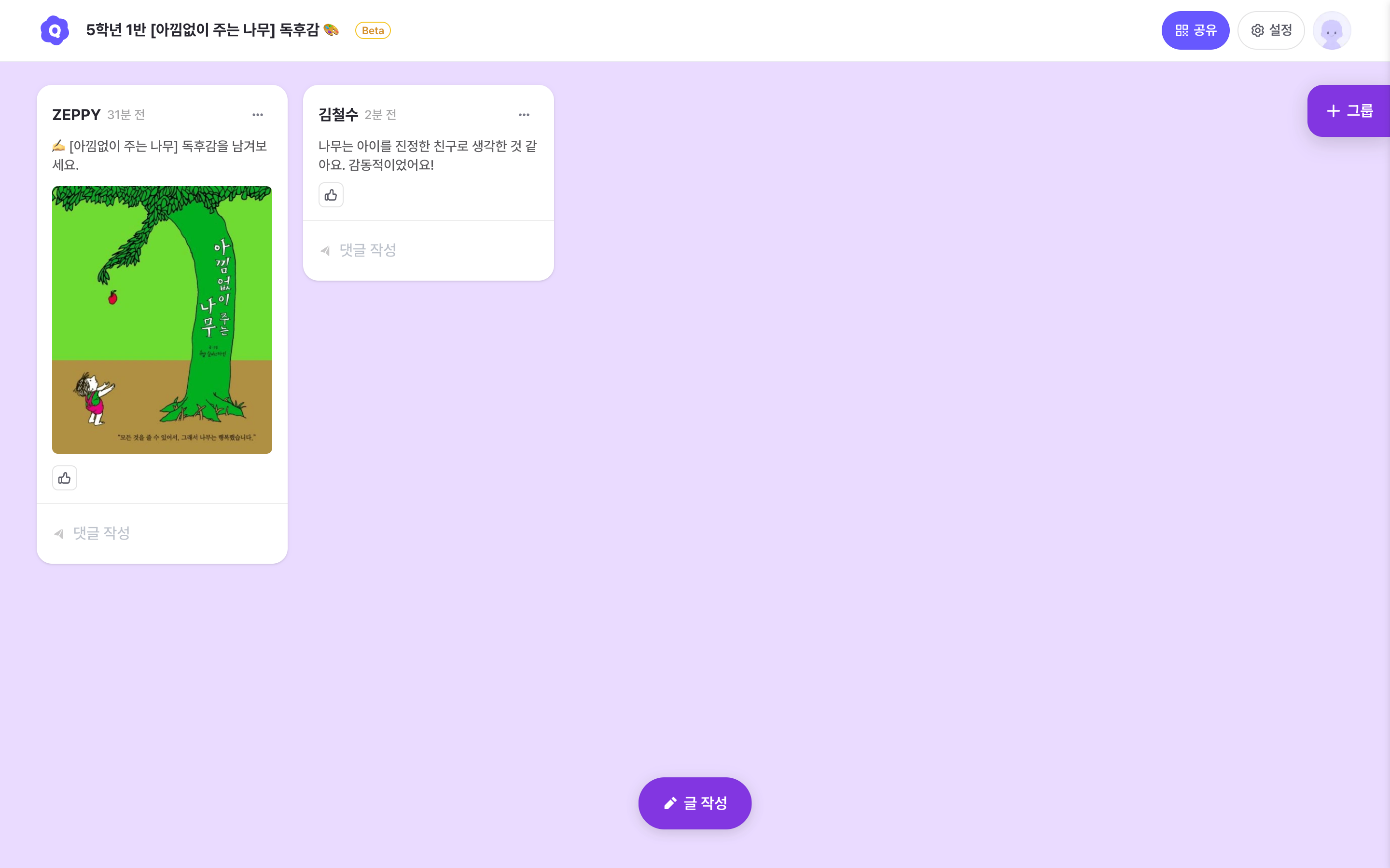 Posts are gathered in a single space without groups.