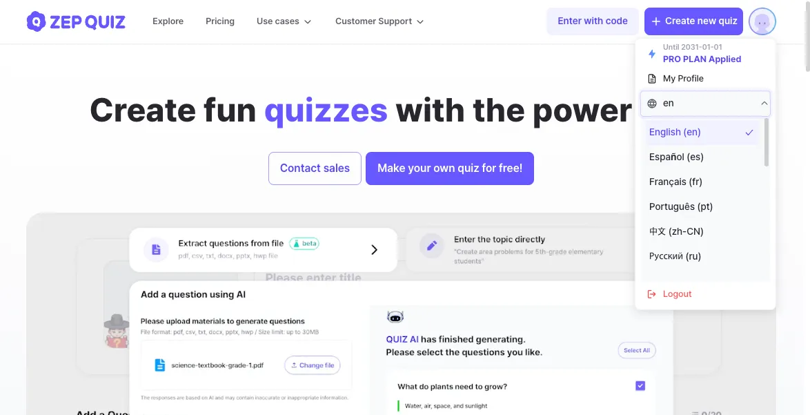 A language change button has been added to the ZEP QUIZ website. Located at the top right corner of the page, it allows users to easily switch to their preferred language. The changed language will be automatically applied on subsequent visits.
