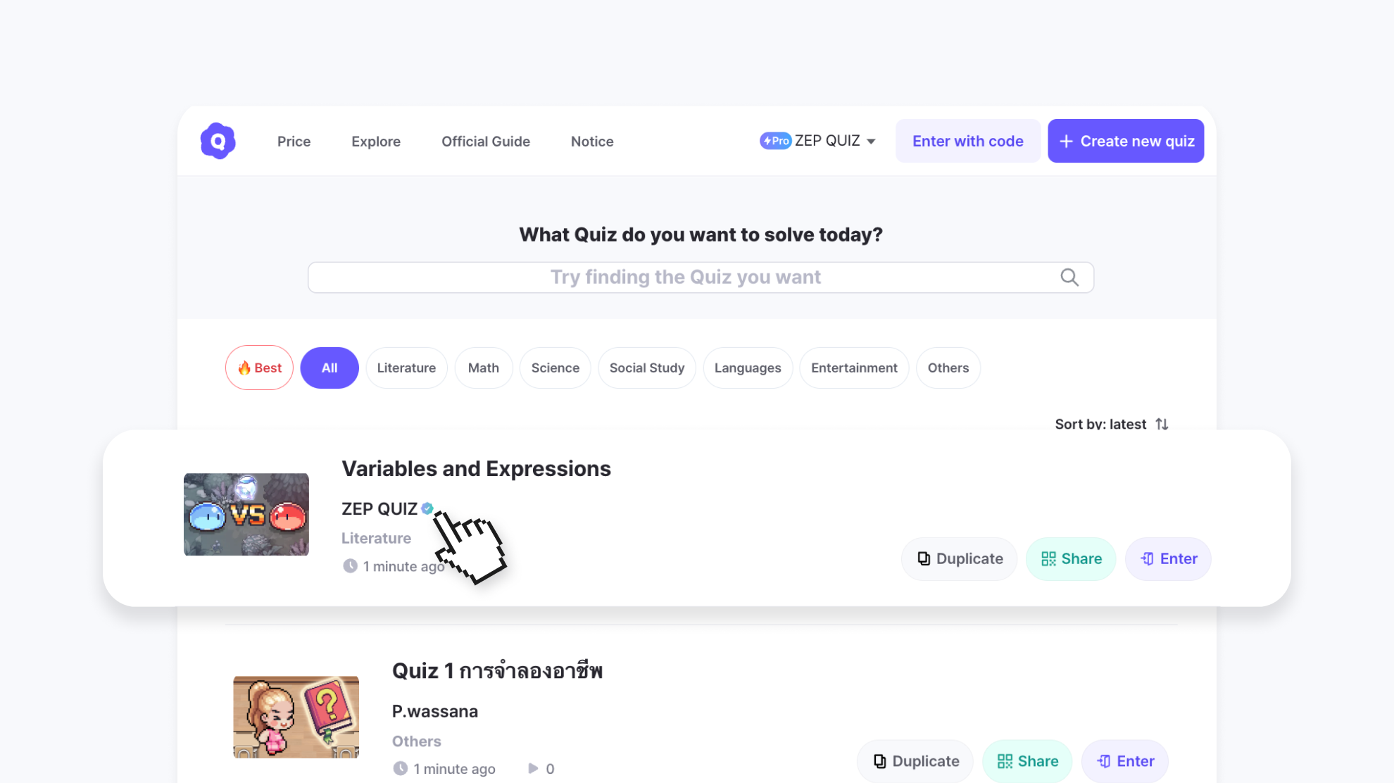 1️⃣ Free access to ZEP QUIZ Pro Plan