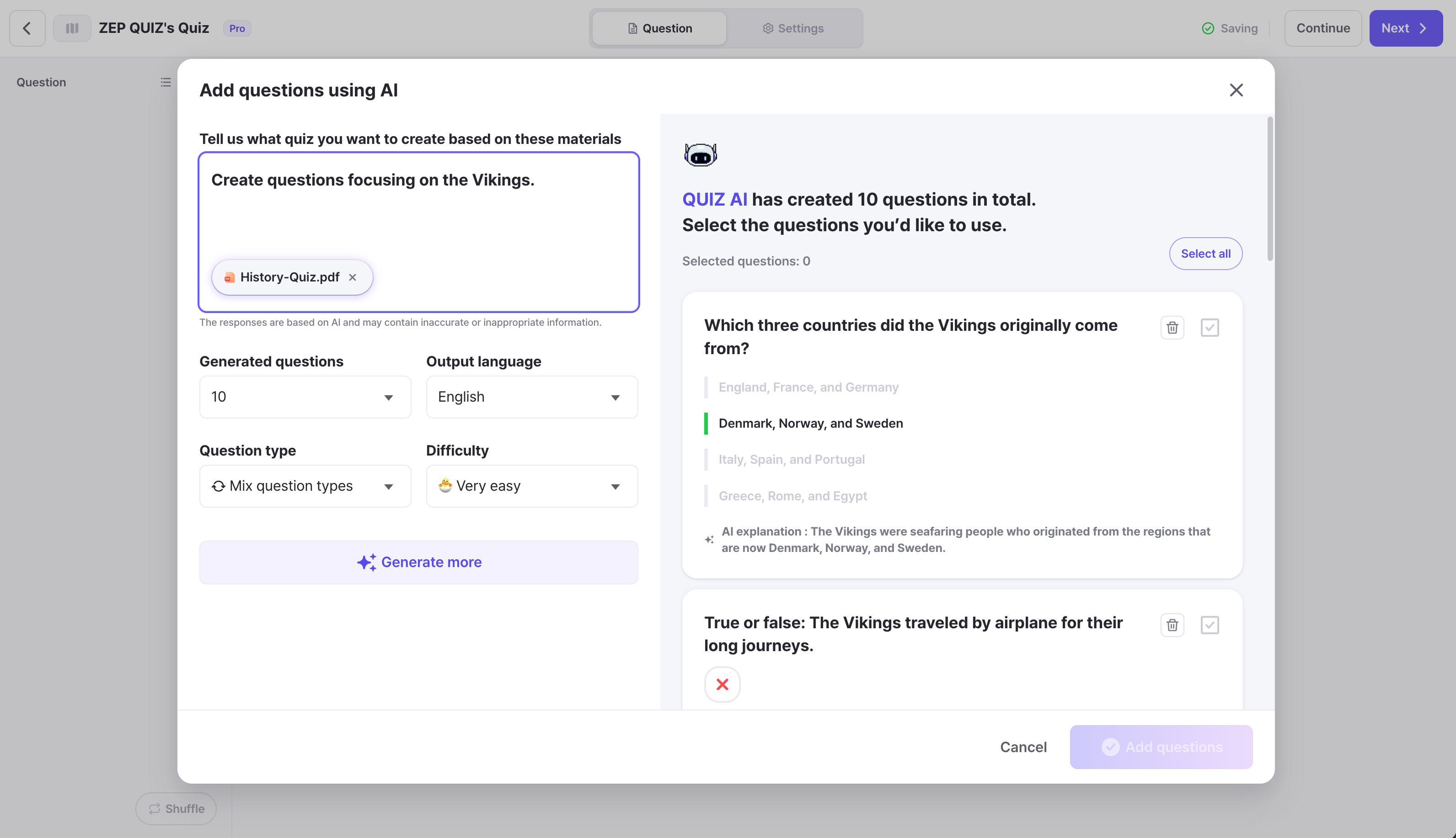 Even with the same file, you can generate different questions depending on your lesson goals.