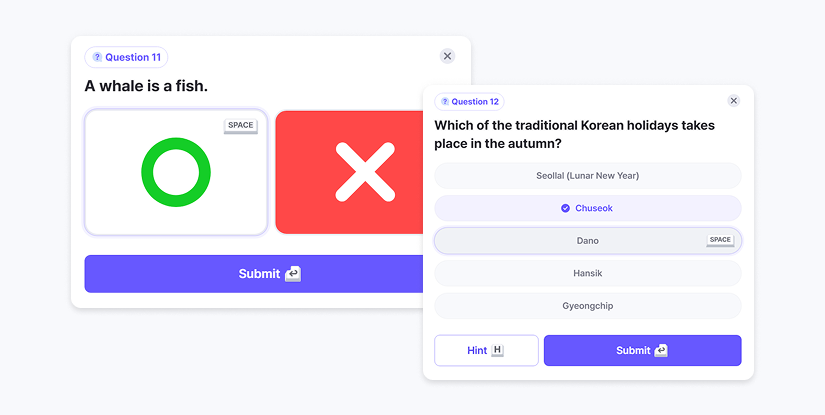 For solving quizzes even without a mouse, keyboard control feature has been newly added.