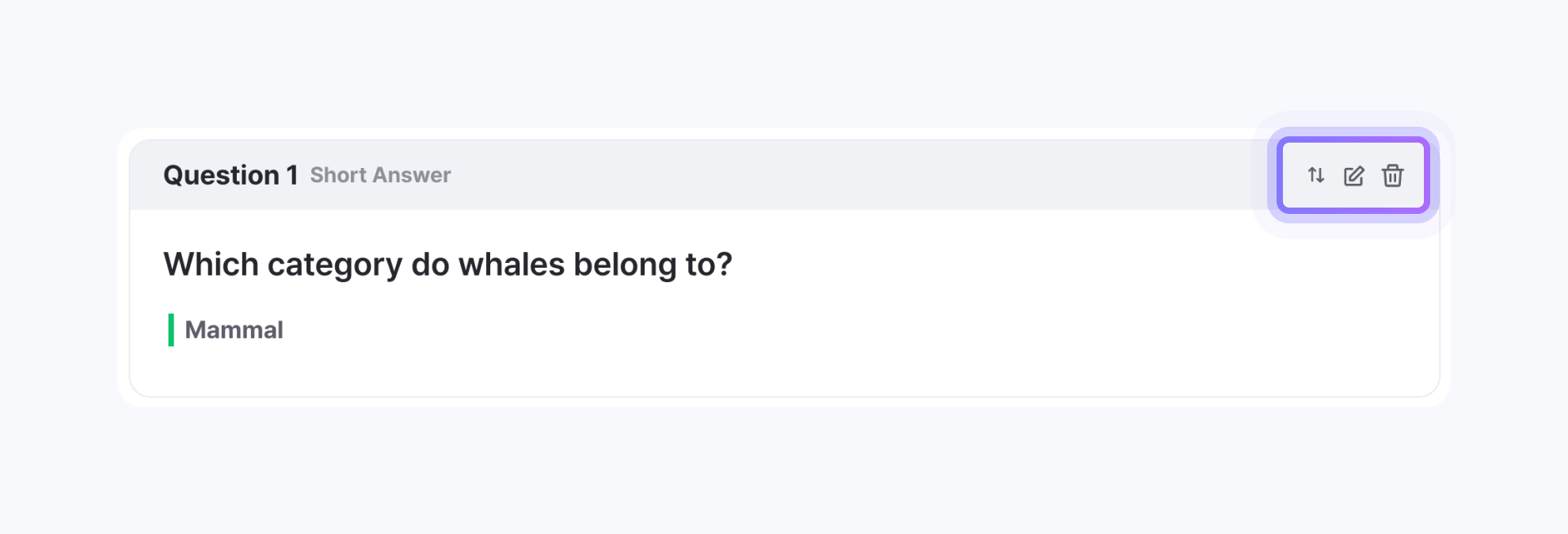 You can change the order, edit questions, or delete questions using the buttons at the top right.