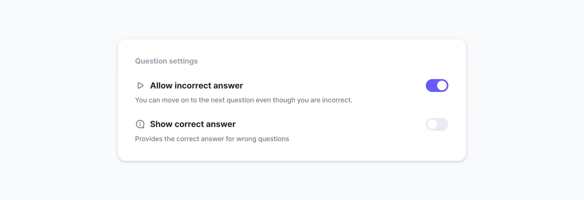 Allow incorrect answer: Allows users to move to the next question even if they do not get the correct answer.