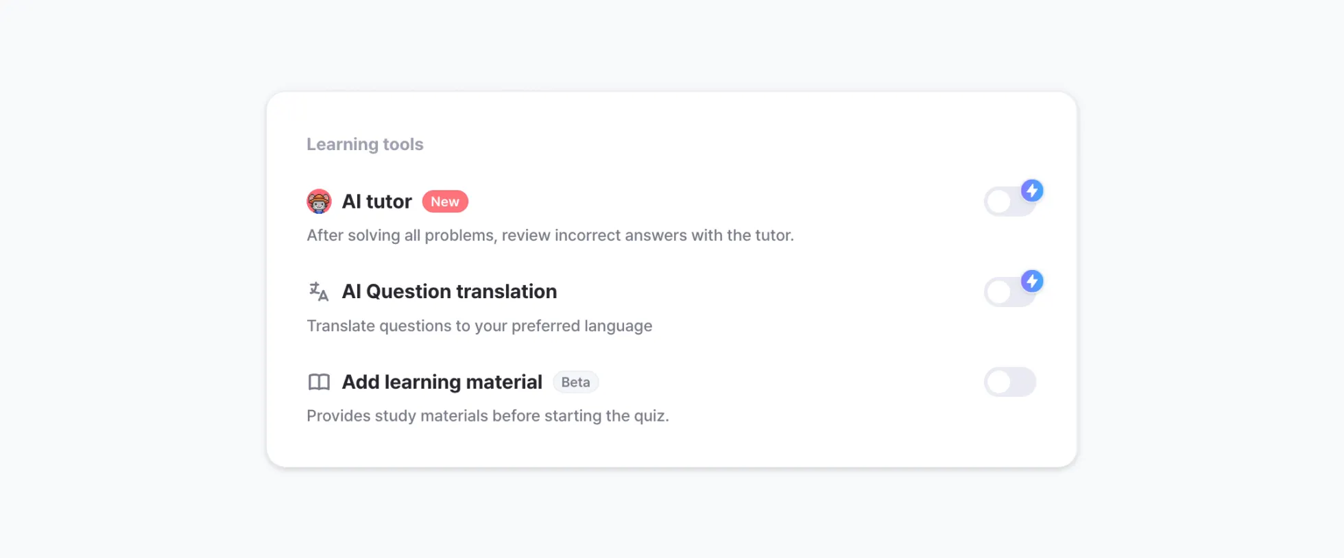 The learning material will be presented before starting the quiz, and you can also set it to be viewable during the quiz-taking process.