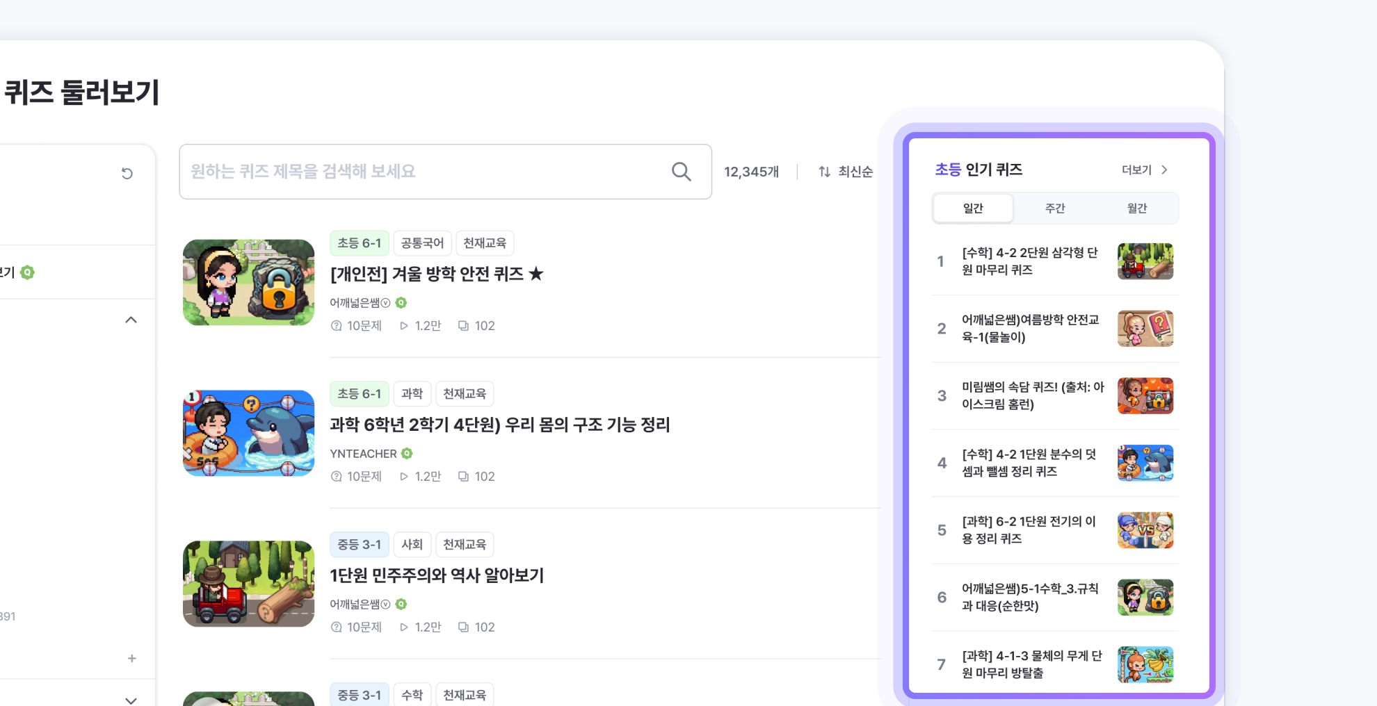 You can now view the daily, weekly, and monthly ranking of popular quizzes on the right side of the Discover page.