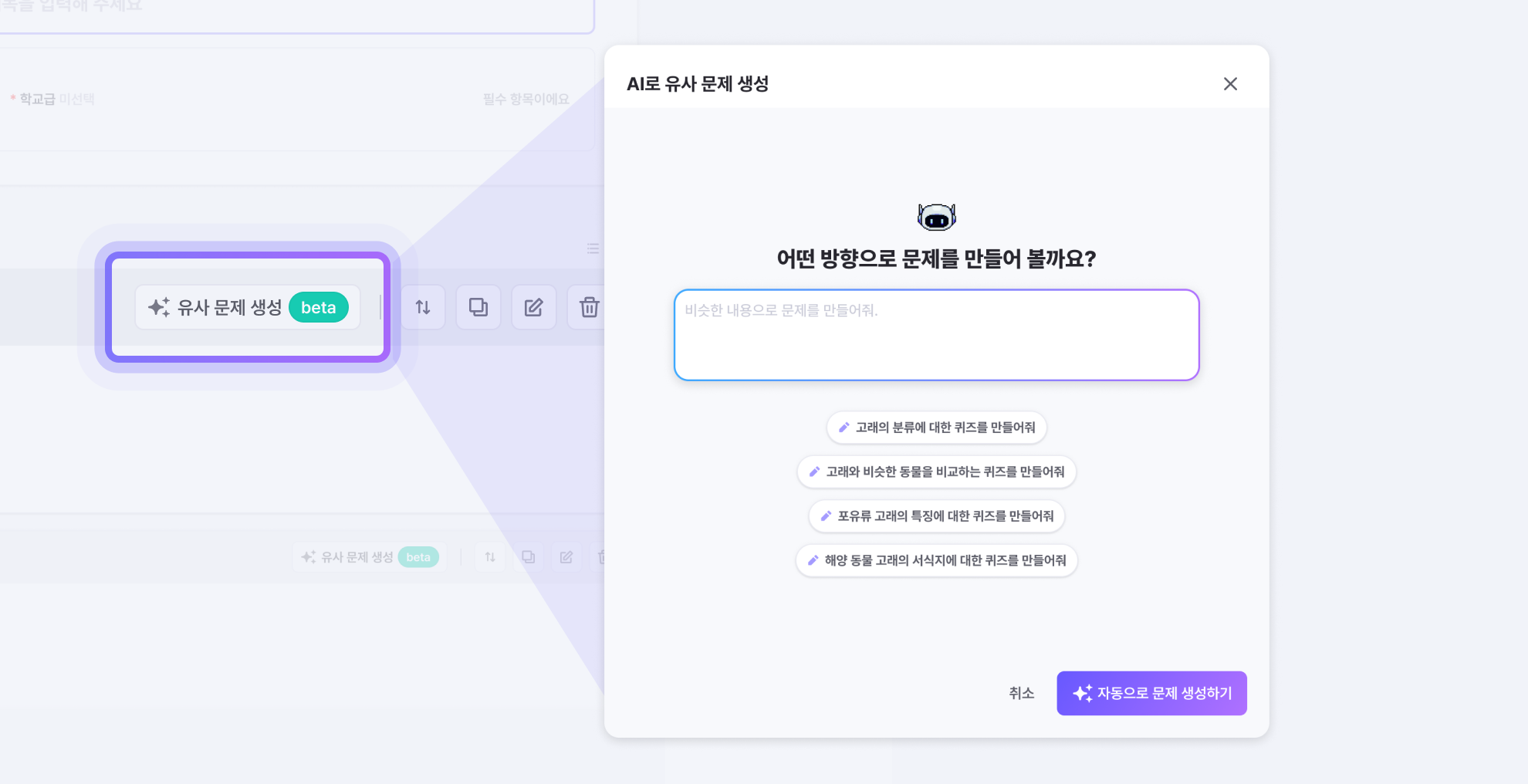 Just click the “Generate Similar Questions” button at the top right of a question in the quiz editor.