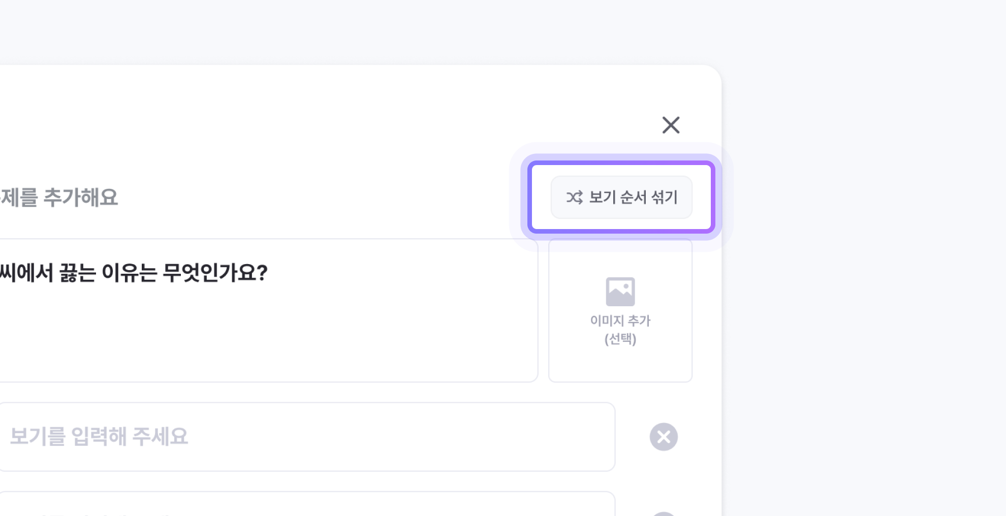 In the quiz editor, click the [Shuffle Choices] button to automatically randomize the order of answer choices.