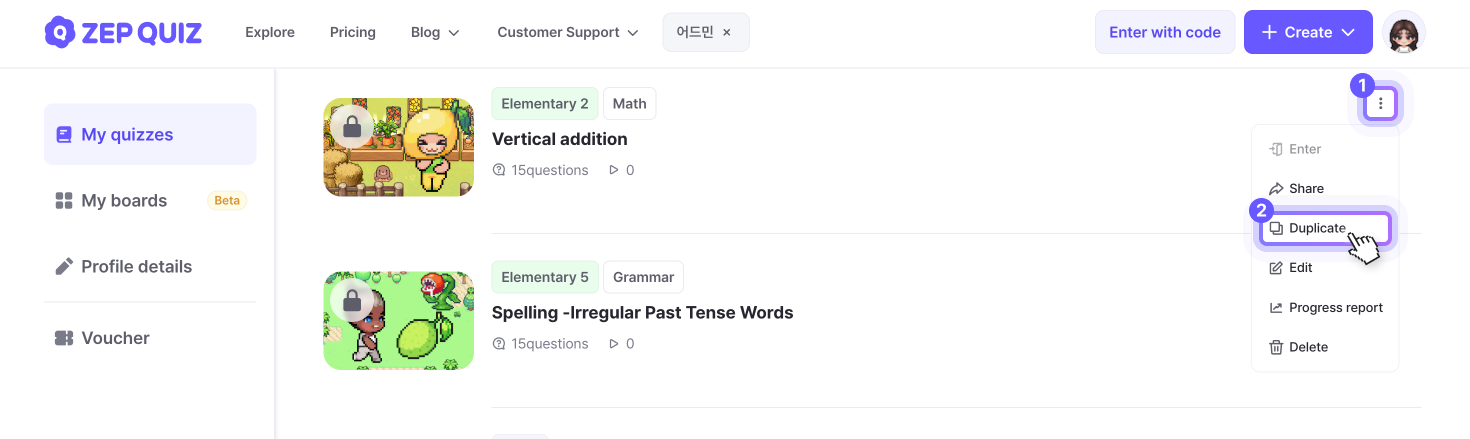 [Copy from 'My quizzes' List]