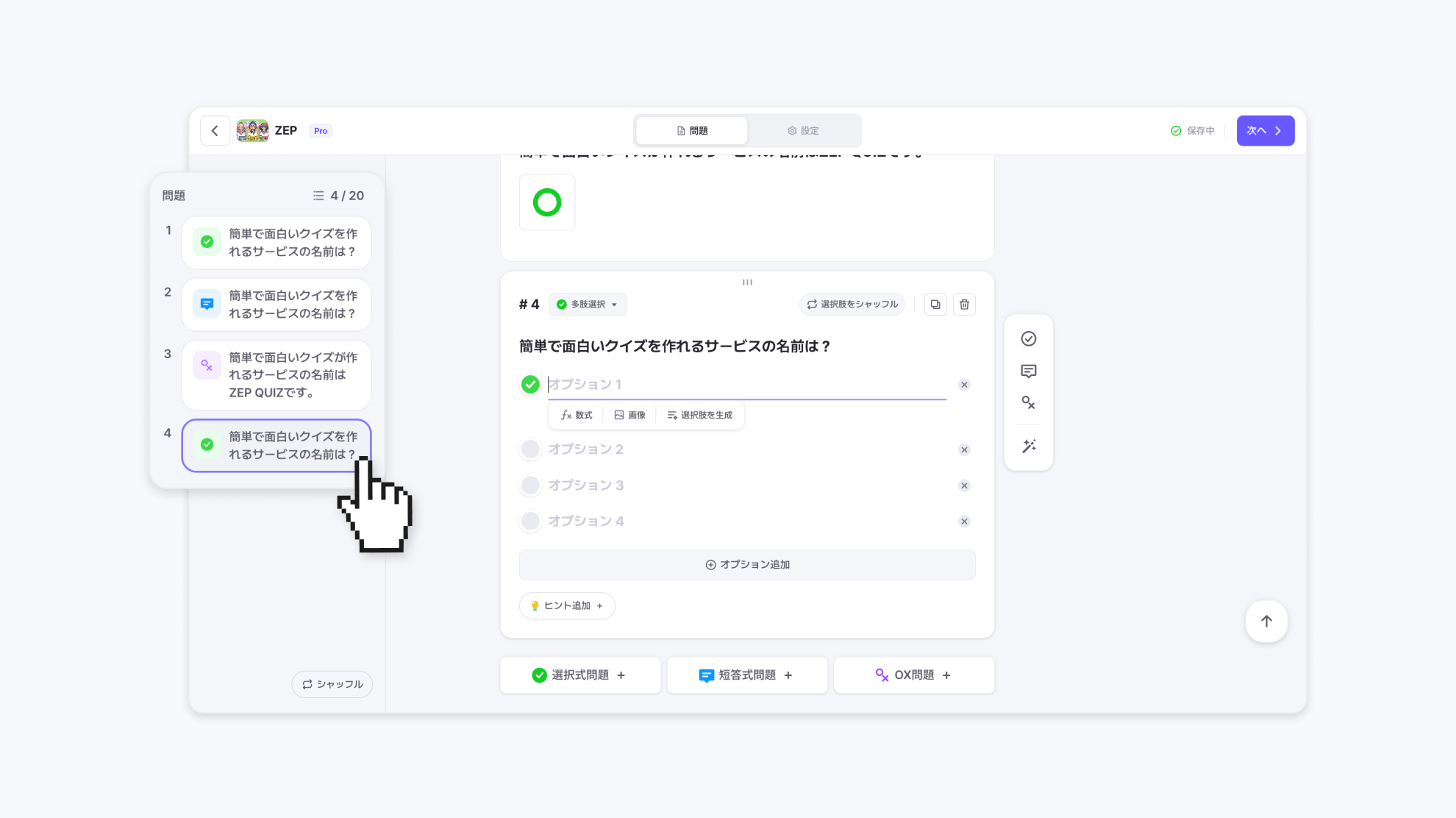 最大20問まで問題を作成できます。