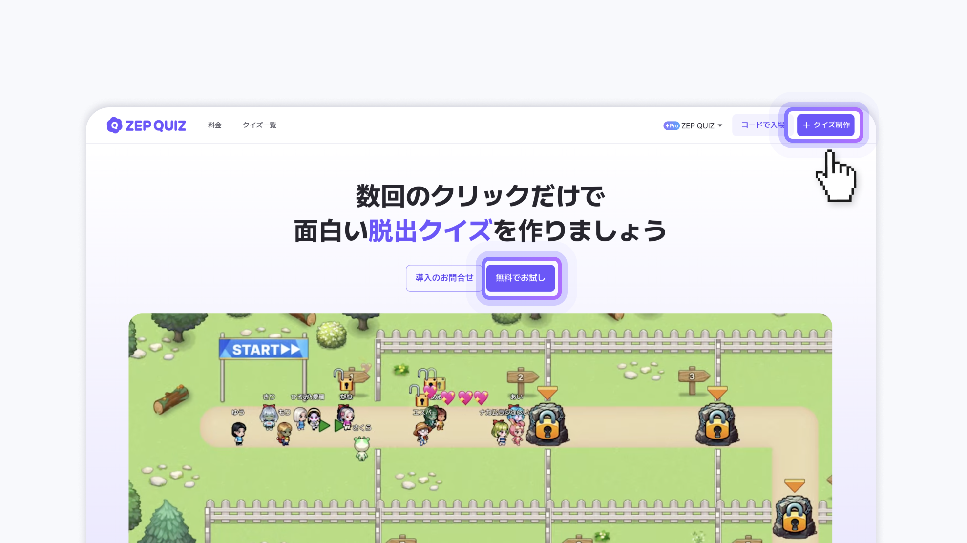 ZEP QUIZにログインした後+マイクイズ制作または+クイズ制作ボタンをクリックしてください。