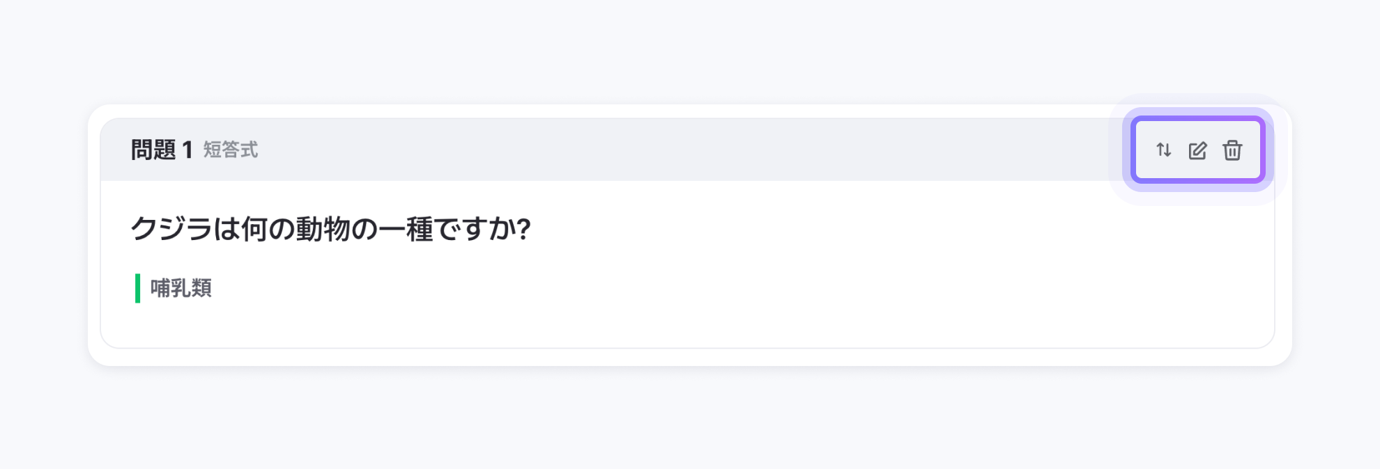 生成された問題の右側上段に位置しているボタンで順番変更、問題修正、問題削除ができます。