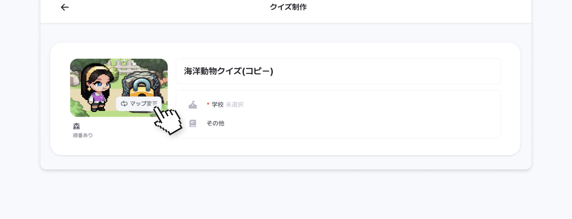 コピーしたクイズの作成ページに移動すると、マップを変更できます!