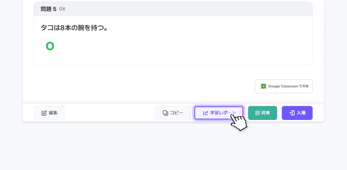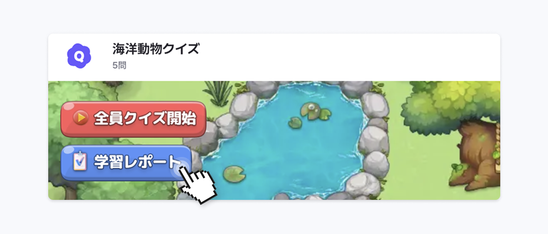 クイズの詳細ページ下段にある[学習レポート]ボタンをクリックしてください。
