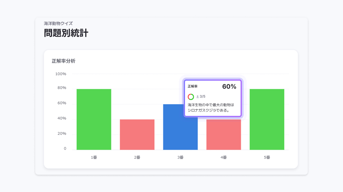 平均正答率:参加者全体の平均正答率を表示します。未回答の問題は不正解として扱います。