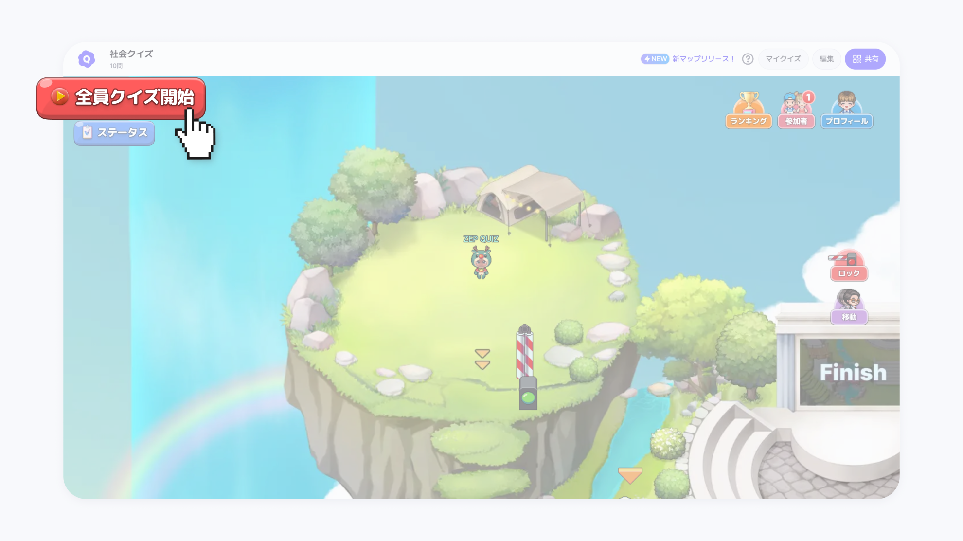 全員クイズ開始ボタンをクリックすると、すべてのユーザーが開始位置に移動されます。
