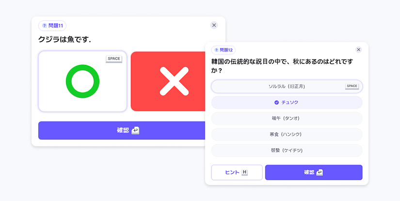 マウスがなくても簡単にクイズをプレイできるよう、キーボードプレイ機能が新たに追加されました。