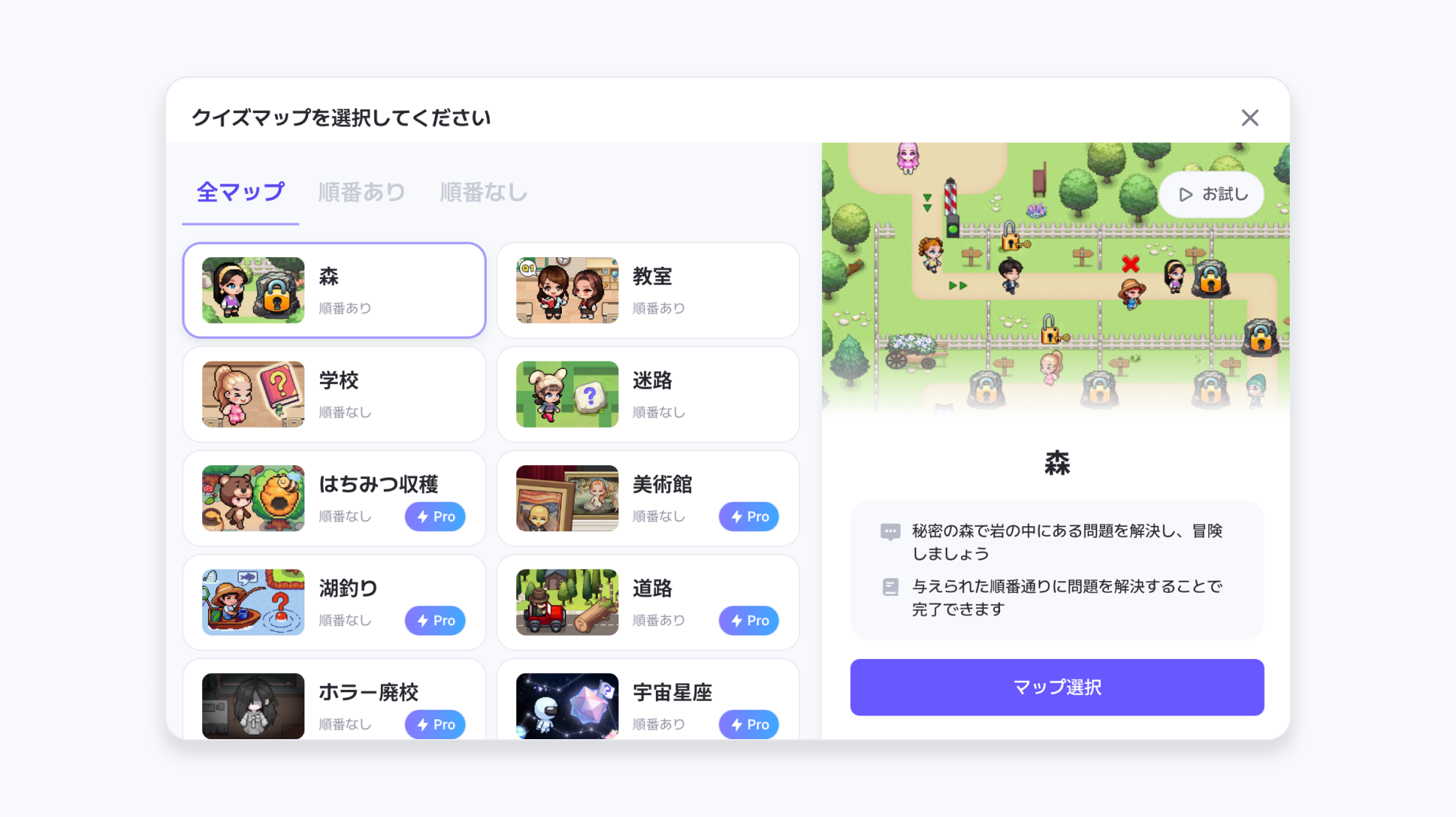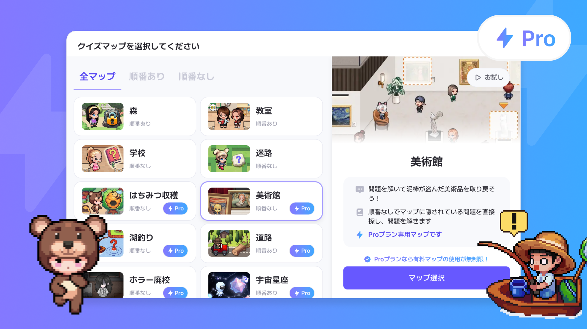Pro Plan専用マップを使用したクイズが編集できませんが、どうすればよいです
