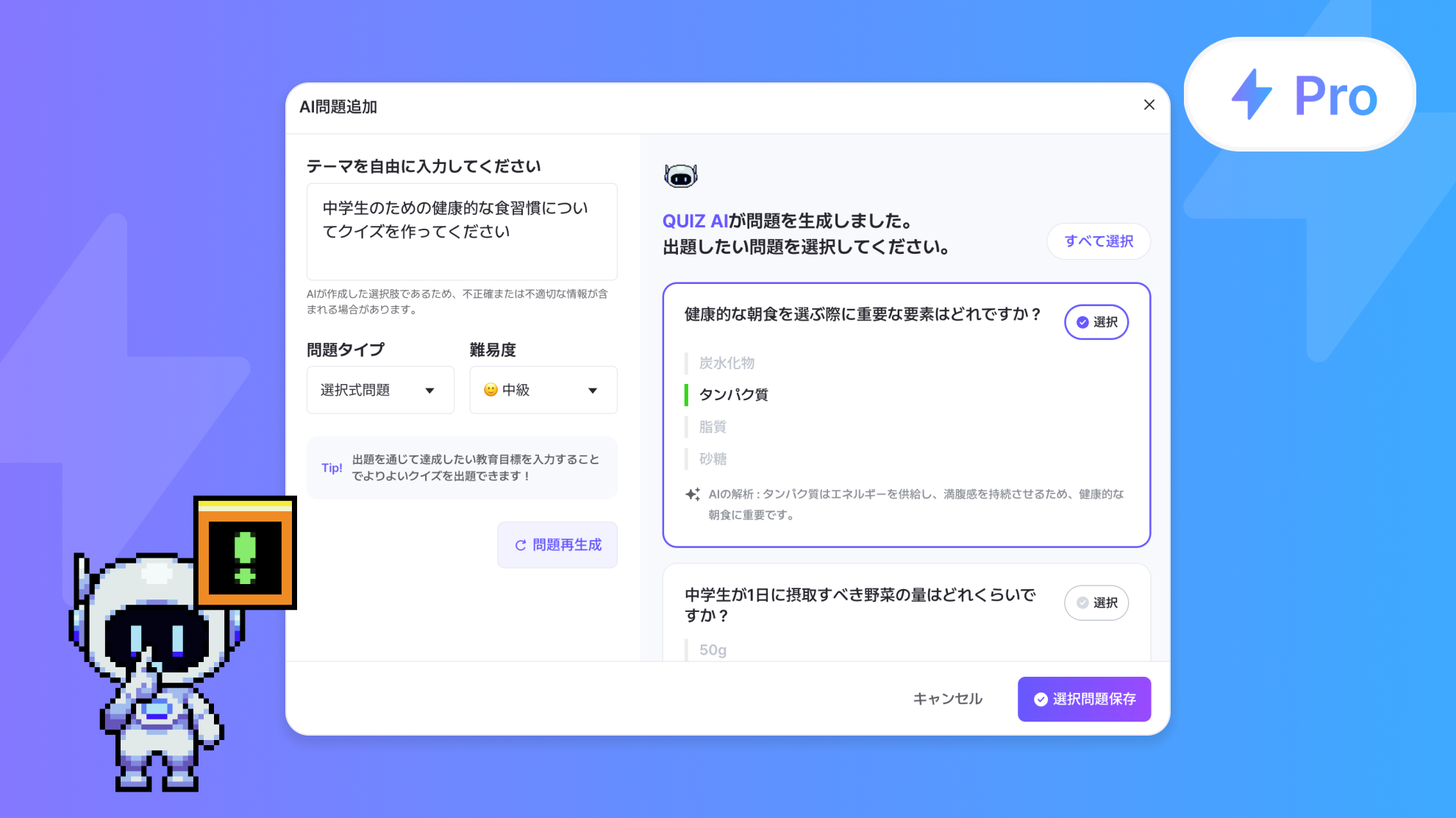 Pro Planに登録したユーザーのみ[AIで問題追加]機能を無制限に使用でき、一般ユーザーはその機能を使用できません。