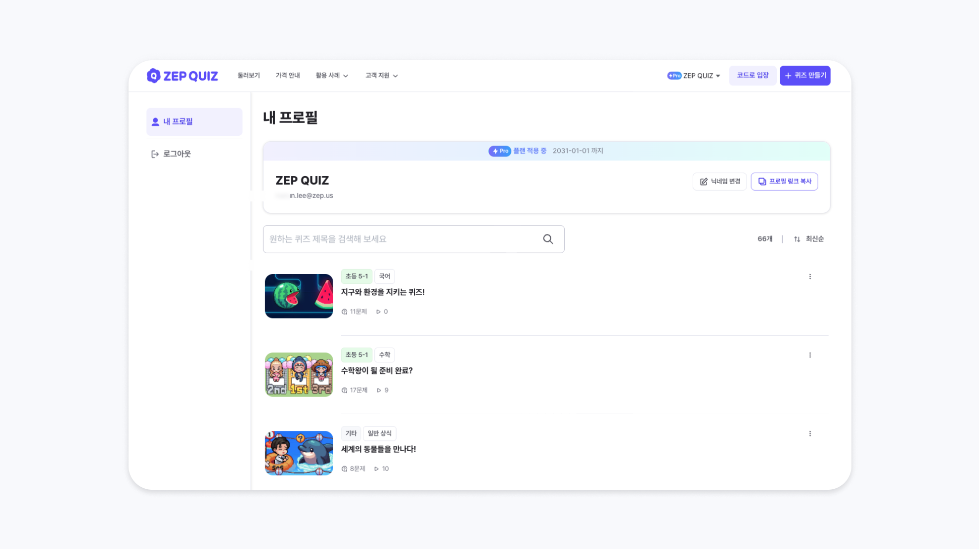 새로운 프로필 공유 기능이 추가되었습니다. 이제 본인의 프로필 링크를 복사하여, 내가 만든 퀴즈 목록을 다른 사람들과 손쉽게 공유할 수 있어요!