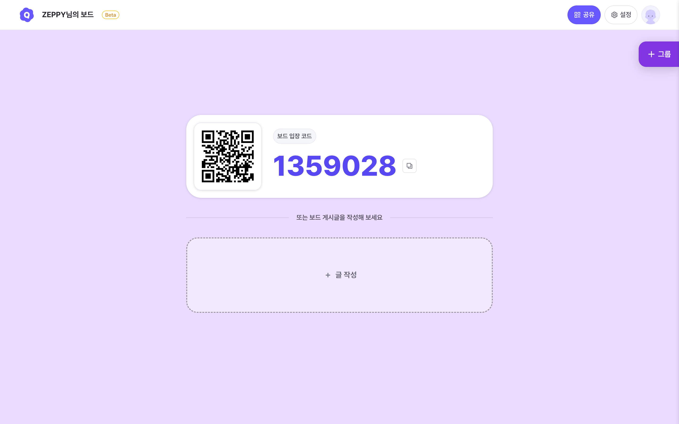 게시글이 1개 이상 작성되면 입장 코드 카드는 자동으로 숨겨집니다.
