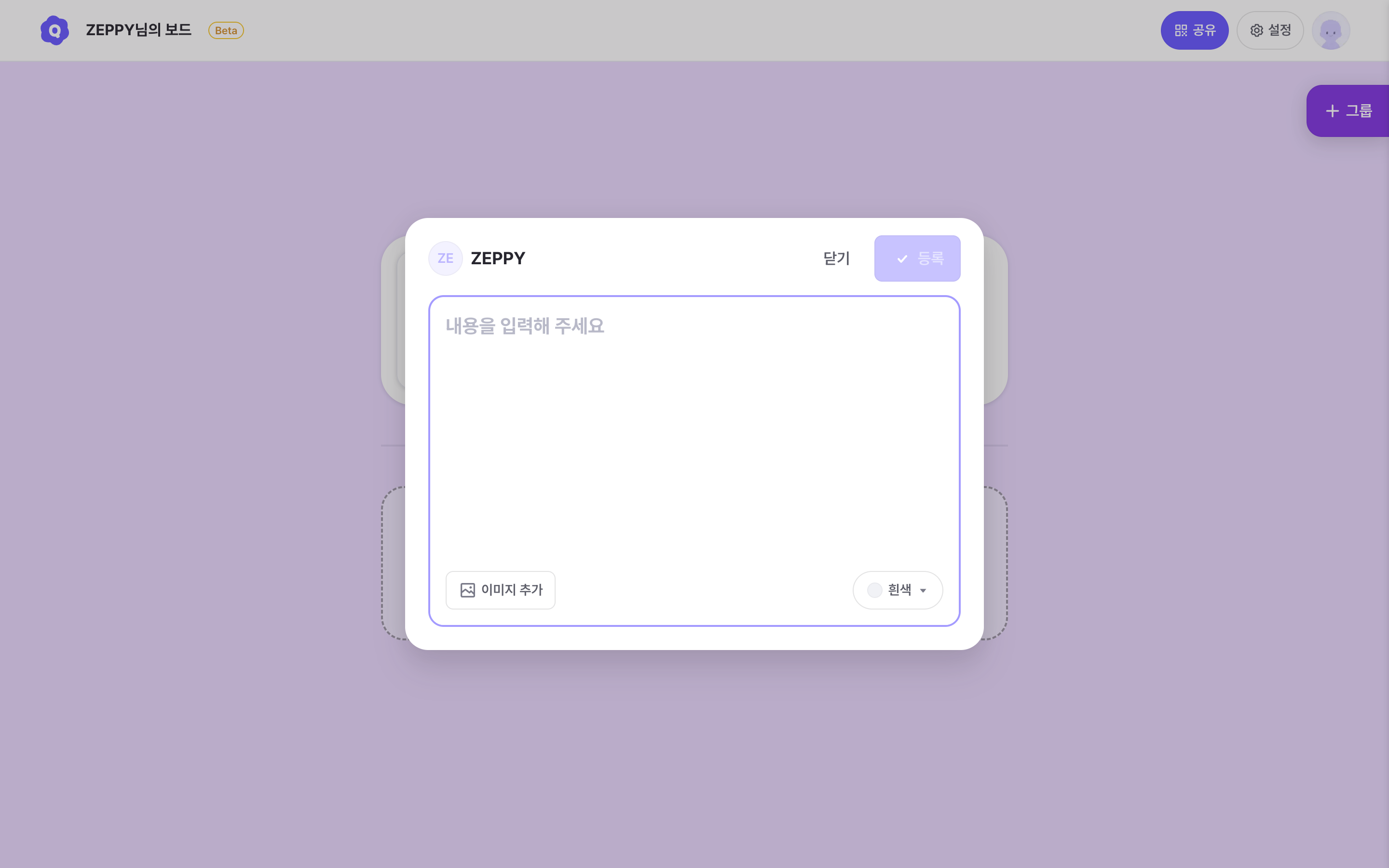게시글 카드 또는 그룹 헤더를 클릭한 상태로 드래그하면 위치를 이동할 수 있어요.