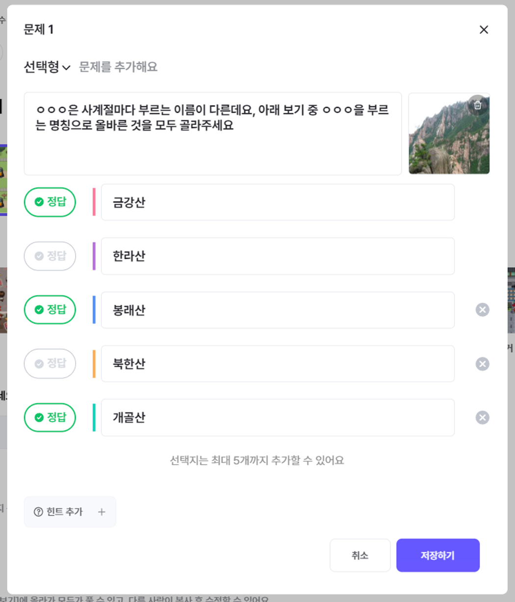 이제 선택형 문제를 만들 때, 정답을 복수 개로 설정할 수 있습니다.