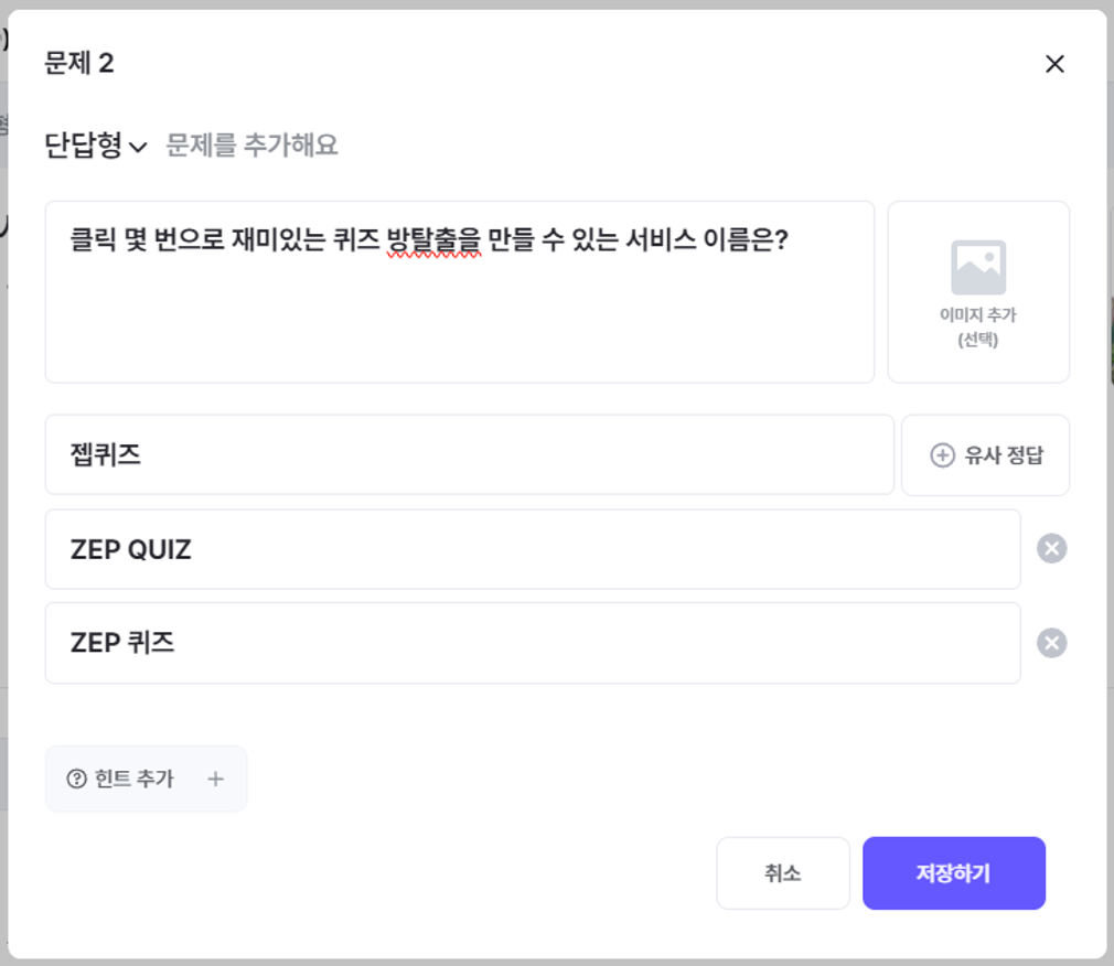 유사한 답안이 있다면 모두 정답 처리를 할 수 있도록 설정해 보세요