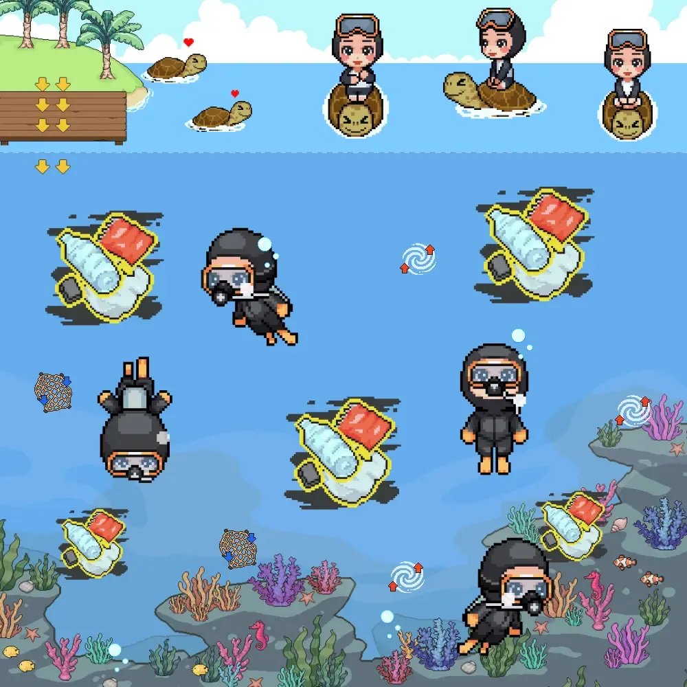 바다 쓰레기를 치워 거북이를 구하고, 바다를 지켜보세요!