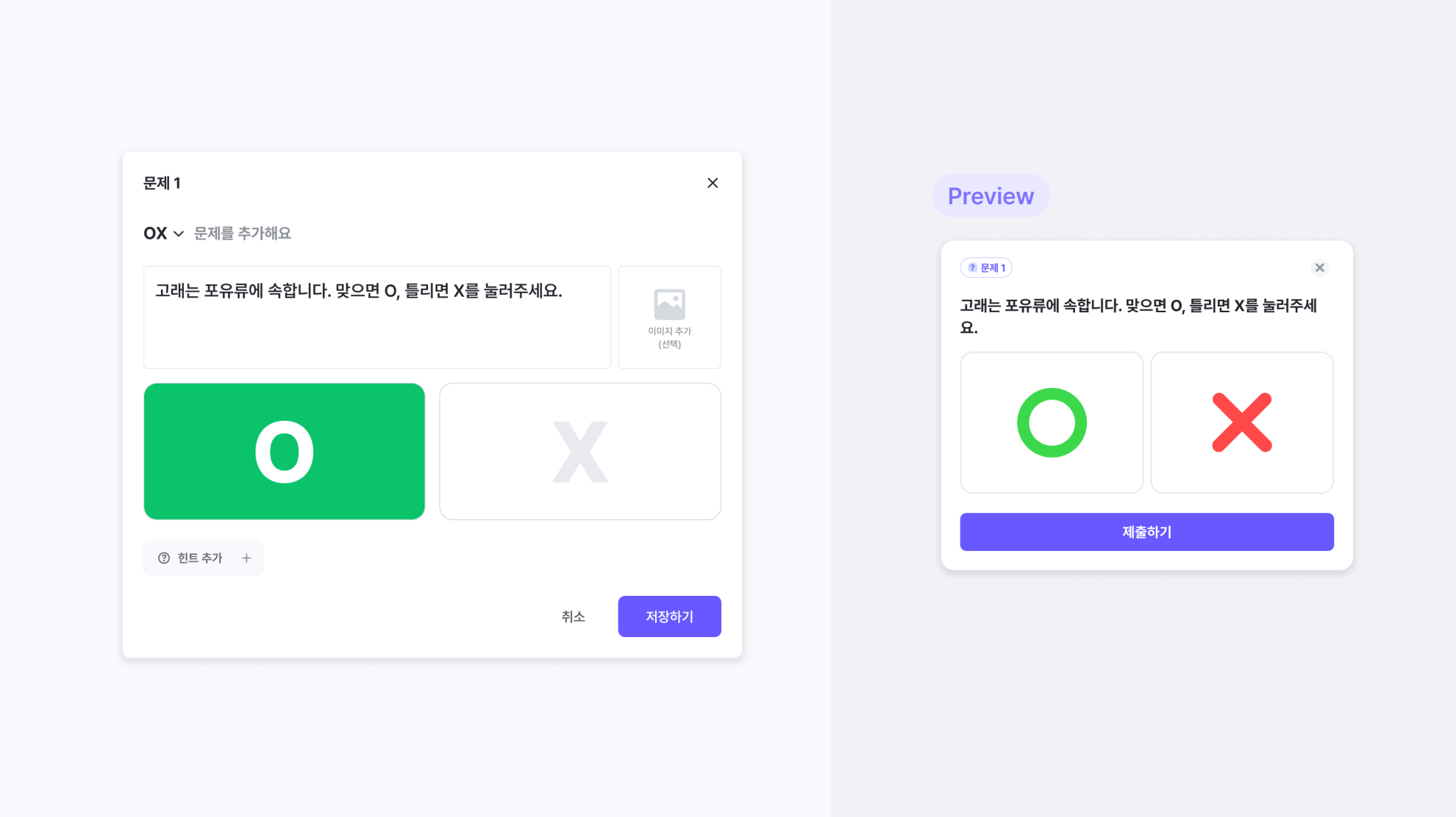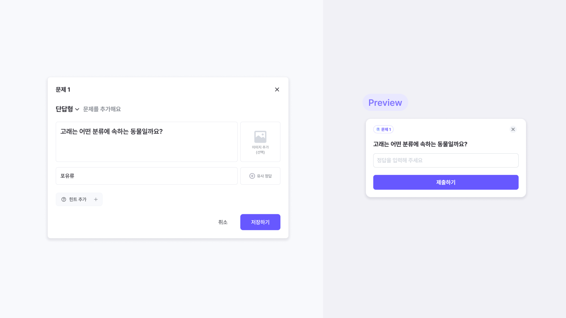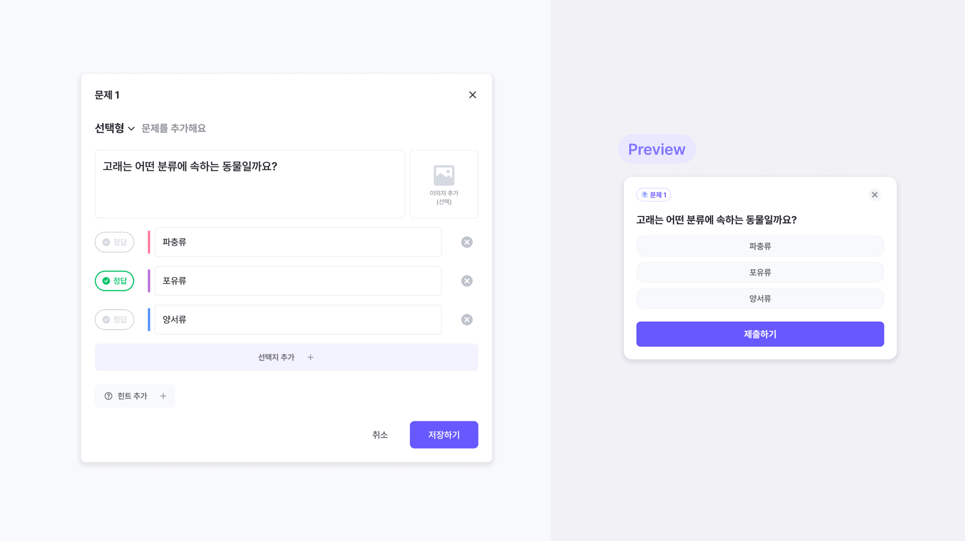 필요하다면 문제에 이미지를 첨부할 수도 있고, 선택형과 단답형 문제는 복수 정답 기능도 제공해요.