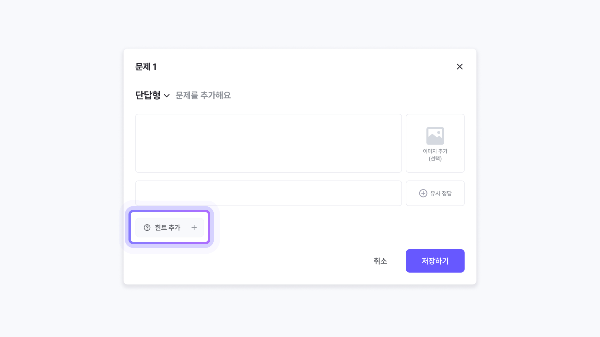 문제 출제 중 힌트 추가 + 버튼을 클릭하면 아래에 입력 칸이 생성됩니다.