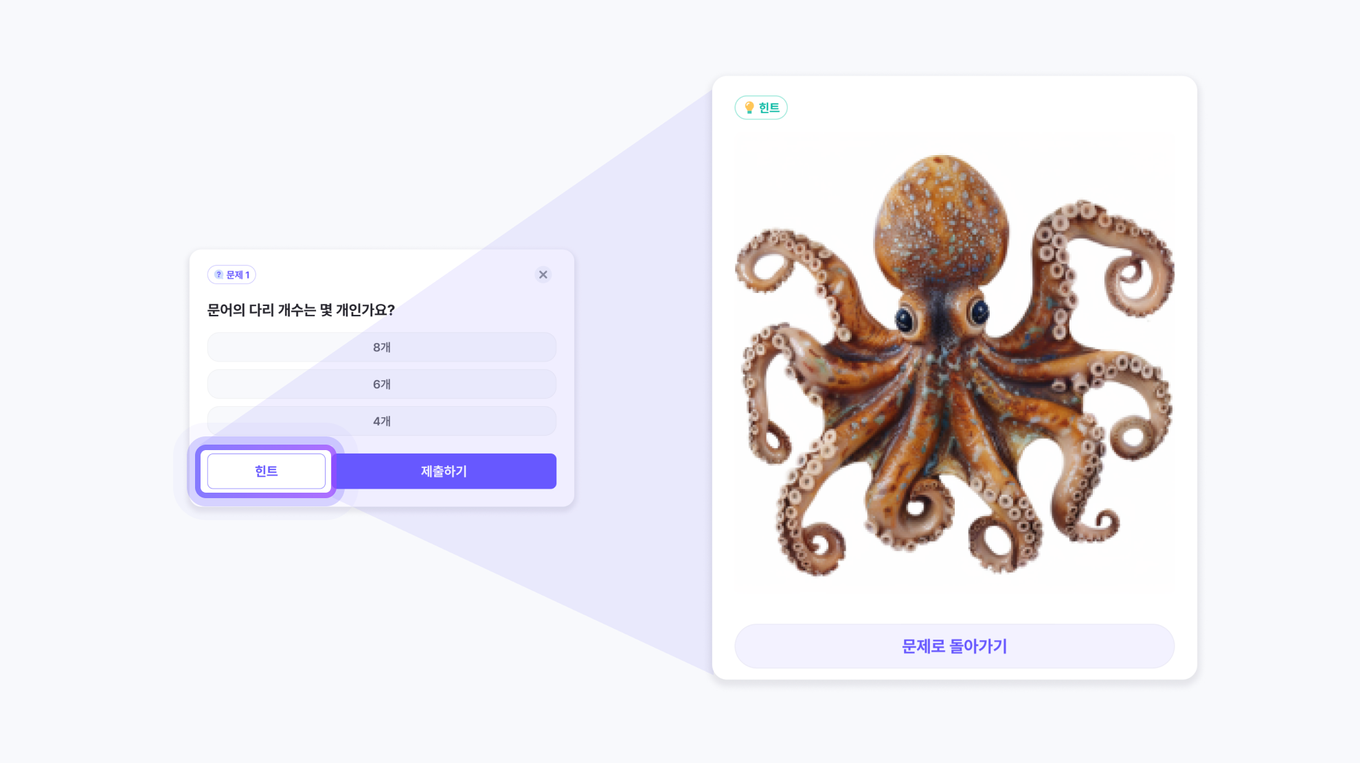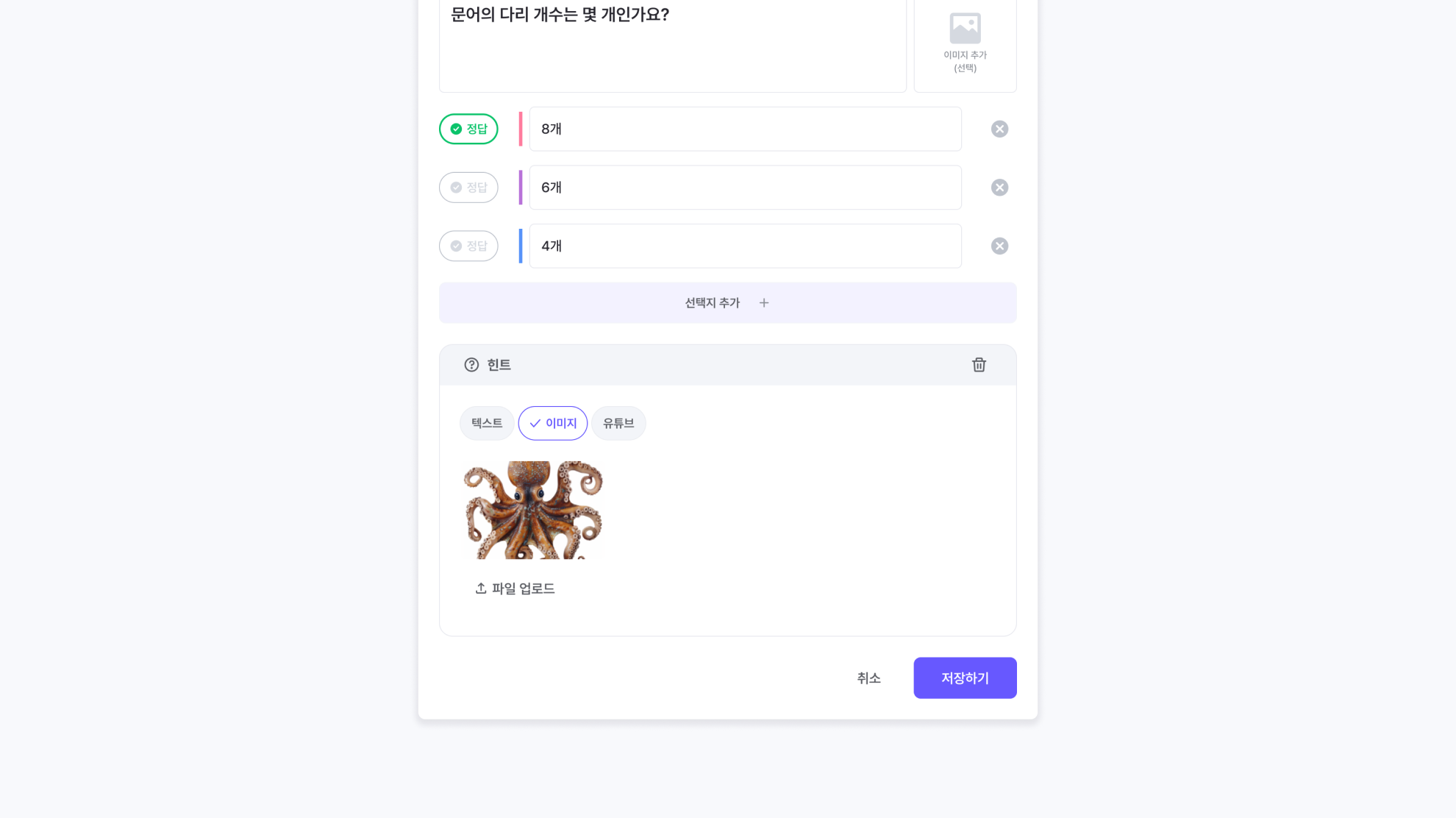 문어 다리 개수를 맞추는 문제에 문어 사진을 힌트로 넣어두었어요.