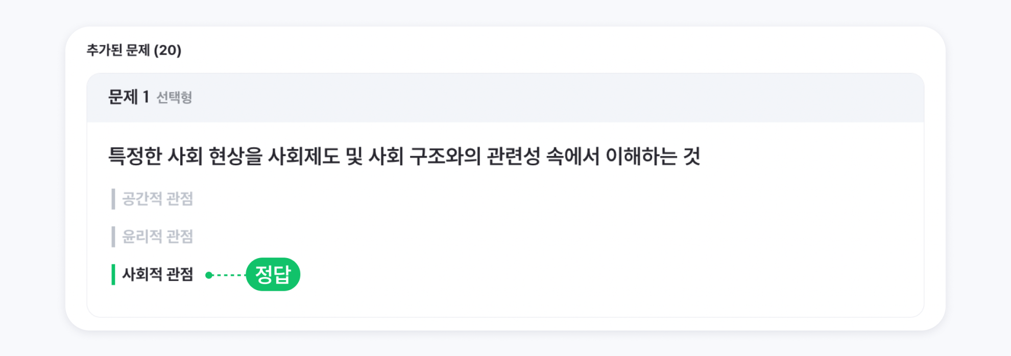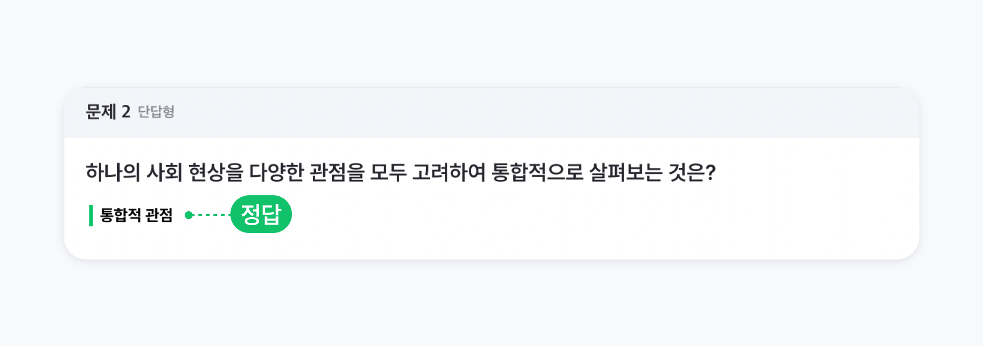 선택형 문제에서 보기 중 초록색으로 표시된 항목이 정답입니다.