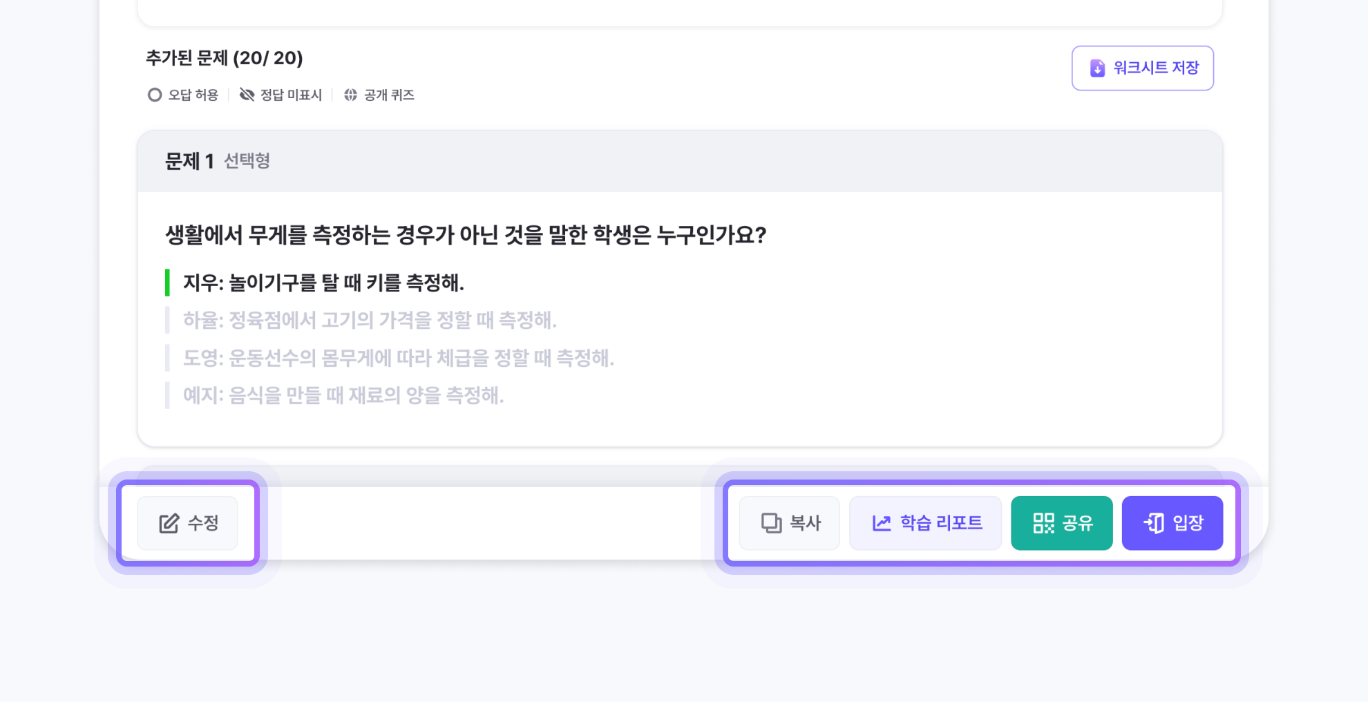 복사 버튼을 클릭하여 퀴즈를 복사해 원하는 대로 편집할 수 있습니다.