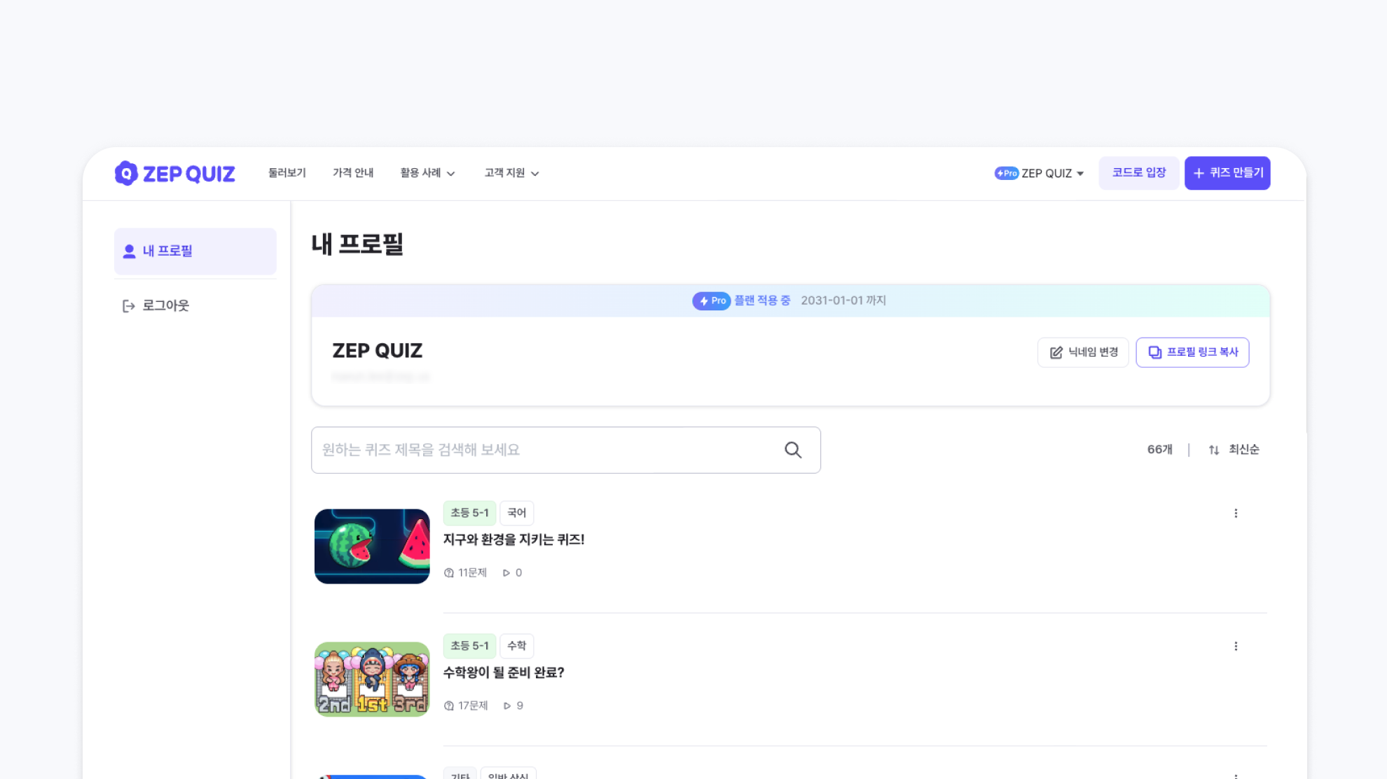 내가 만든 퀴즈를 최신순으로 볼 수 있습니다.