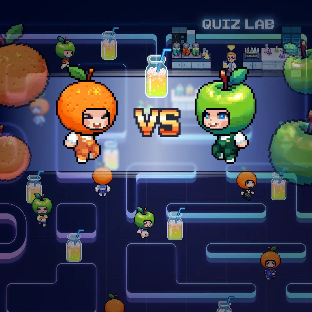 퀴즈를 풀며 주스를 모아 신제품을 출시해 보세요!
