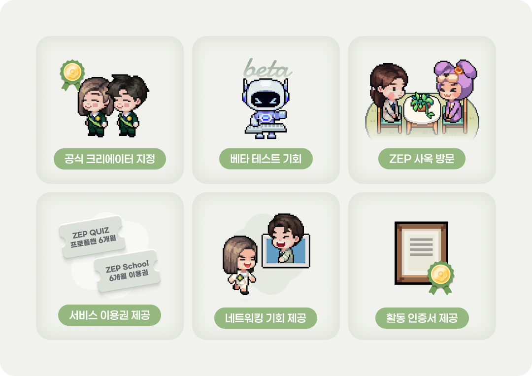 ZEP 본사 초청 행사 참여 기회 및 ZEP QUIZ 제작자들과 직접 소통 및 기획 체험 기회 제공