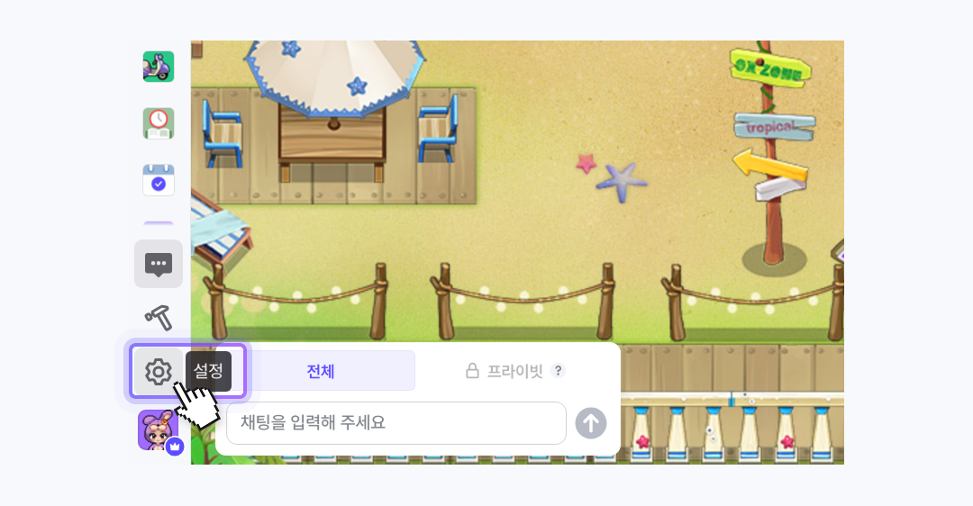 좌측 하단 설정 아이콘를 통해 접속할 수 있어요.