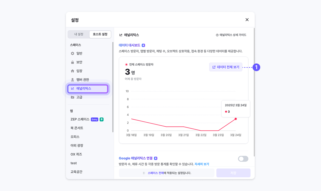 스페이스에 방문한 데이터를 확인할 수 있는 공간입니다.